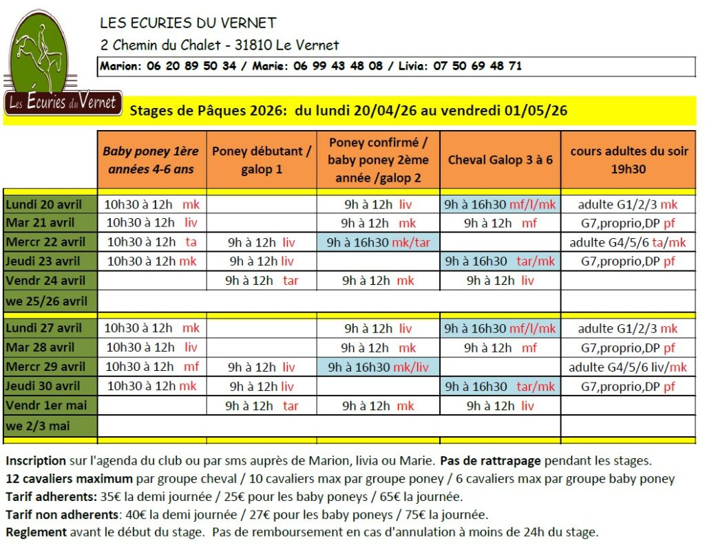 Le planning des stages pour les vacances d’avril est disponible !